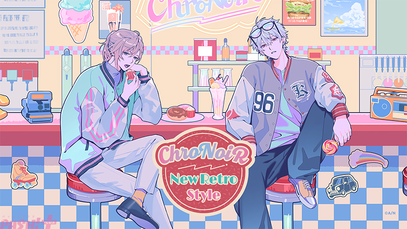 にじさんじライバーの叶、葛葉の2名によるユニット「ChroNoiR」の新たな一面をお見せする「ChroNoiR ニューレトロスタイル」グッズの販売が決定。また、ニューレトロな世界観をお伝えするグッズPVも公開されました。