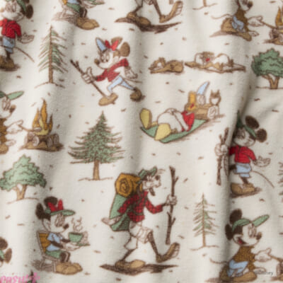 カートゥーン作家でディズニーの伝説的人物でもあるフロイド・ゴットフレッドソンの代表作をあしらったこのフリースには、アウトドアの冒険に出かけるミッキーとその友人全員が登場しています。