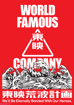 来たる10(トウ)月8(エイ)日、東映(トウエイ)の日より「We’llBe EternalllyBonded With Our Heroes.」というコピーの下、世界を視野に入れてグッズという観点から自社のブランドを発信する”東映荒波計画”が始動します。今回は第1弾として、Tシャツやキャップ、タオル、靴下、ステッカーといった東映オフィシャルグッズを販売。