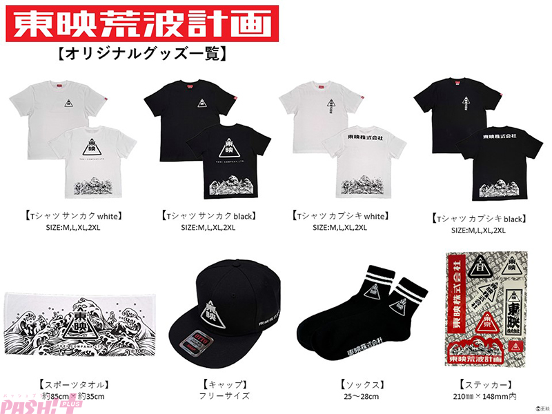 10(トウ)月8(エイ)日、“東映”の日に「東映荒波計画」が始動。東映創立73年で、初めて“東映”の“ロゴ”や“荒波”をあしらったTシャツ、キャップ、タオル、靴下、ステッカーなどの魅力あふれる“東映オフィシャルグッズ”が発売となります。