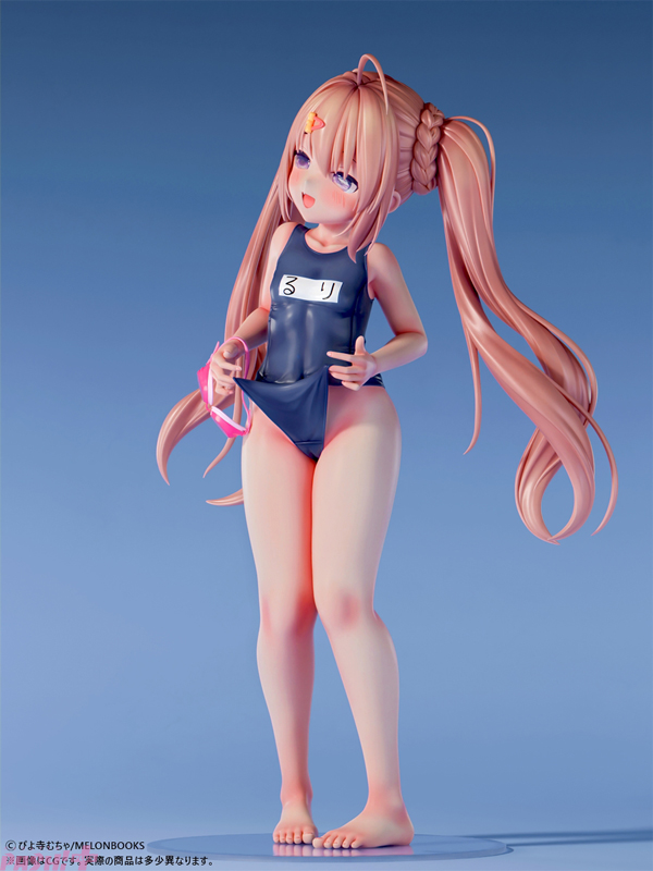 スクール水着のディテールと光沢感が少女の魅力と背徳感を引き立てる…! ぴよ寺むちゃ先生が描く「るりちゃん」がスク水姿でフィギュア化