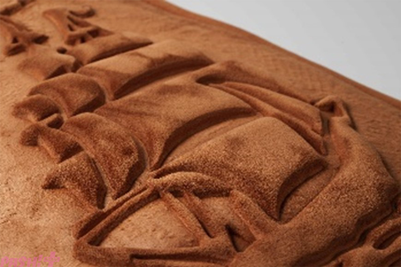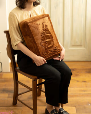 「アルフォートミニチョコレート エンボスクッション」のチョコレート部分の帆船はぷっくり立体的になっており、リアリティを追求したクッションです。