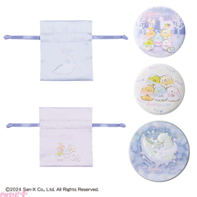 その他にも、すみっコたちが集合したフェイスタオルや化粧品などを入れられる巾着、コンパクトサイズの缶ミラー、小物を入れられる缶ケースのアソートから選べるおやくだちコレクション、手軽に髪の毛をまとめられるシュシュと、使いやすいジャガード仕様ハンドタオルのアソートから選べるみだしなみコレクション、ぽかぽかバスタイムが楽しめる入浴料コレクションなど、日常使いのできるアイテムをラインナップしました。