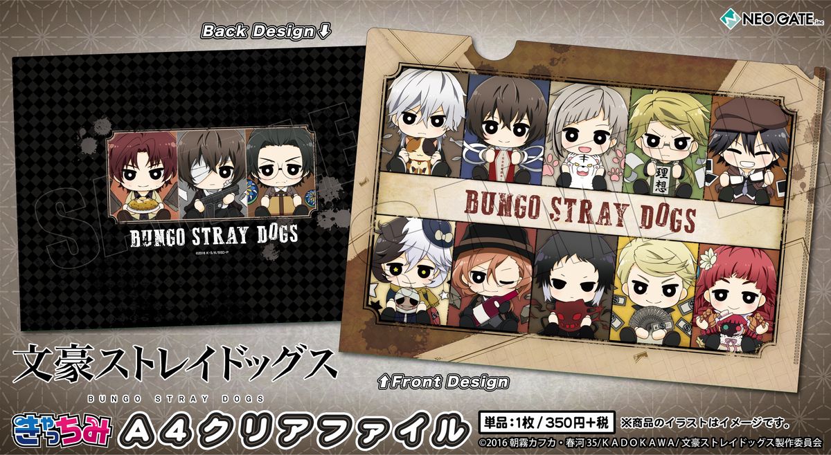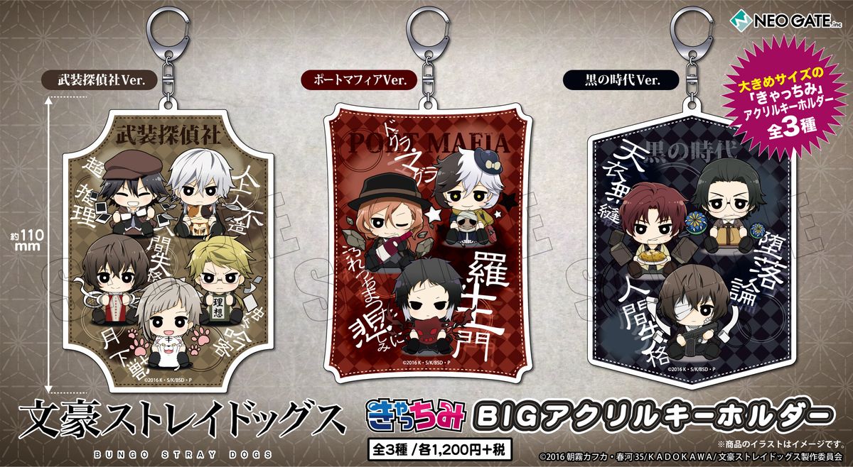 TVアニメ『文豪ストレイドッグス』より「きゃっちみコレクション」の描き起こしイラストを使用したトレーディング缶バッジ、BIGアクリルキーホルダー、クリアファイルが登場する。