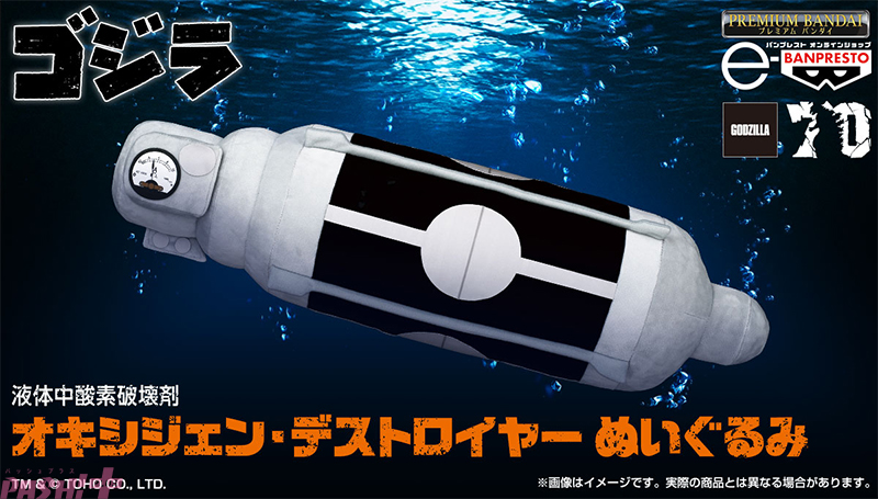 『ゴジラ』シリーズでゴジラに対抗する兵器として登場する「オキシジェン・デストロイヤー」。人類がゴジラにあらがえた数少ない兵器の一つとして君臨する装置が、1/1サイズのぬいぐるみで商品化!