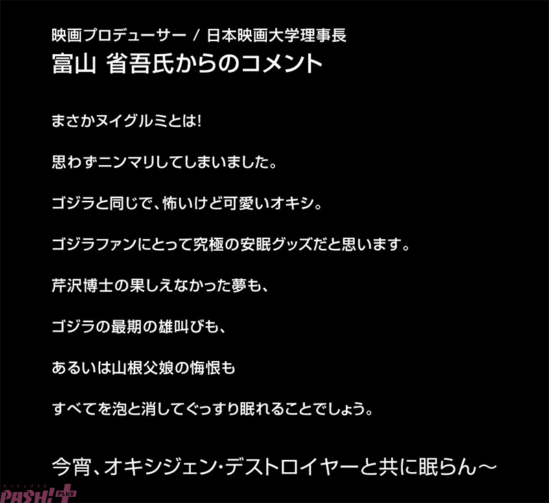 商品化にあたり、ゴジラシリーズを手掛ける映画プロデューサー/日本映画大学理事長である富山省吾氏よりコメントも到着しています。