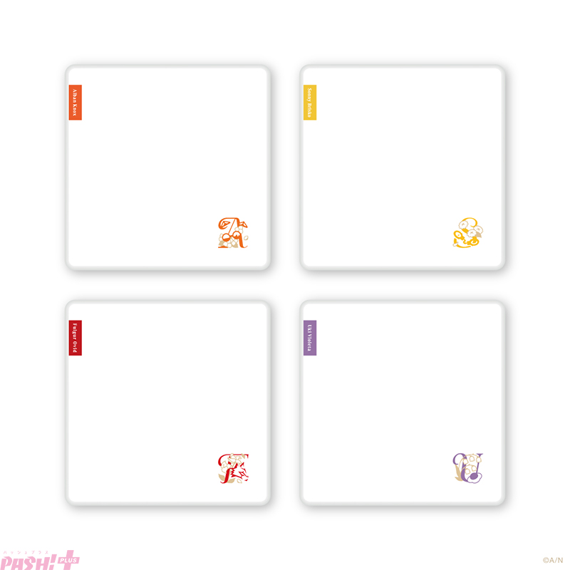 ラインナップは、デフォルメビジュアルを使用したフロッキーマスコット、撮りおろしビジュアルを使用したアクリルスタンド、ランダム缶バッジ、ランダムカード、クリアファイル。さらに、モチーフデザインを使用した巾着、ハンカチの計7種です。