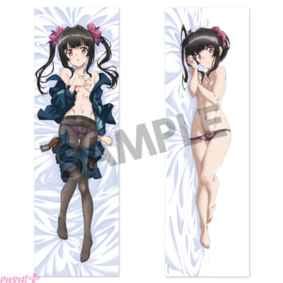 両面とも衣装を脱いだ大胆な姿で、縦横異なる向きで添い寝シチュエーションを楽しめます。生地はきめ細やかな質感が特徴の「アクアヴェール(2way トリコット)」を使用しています。