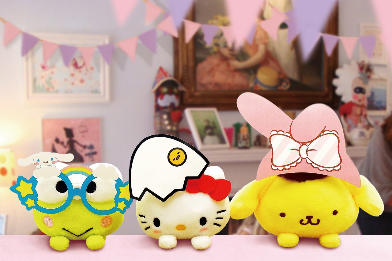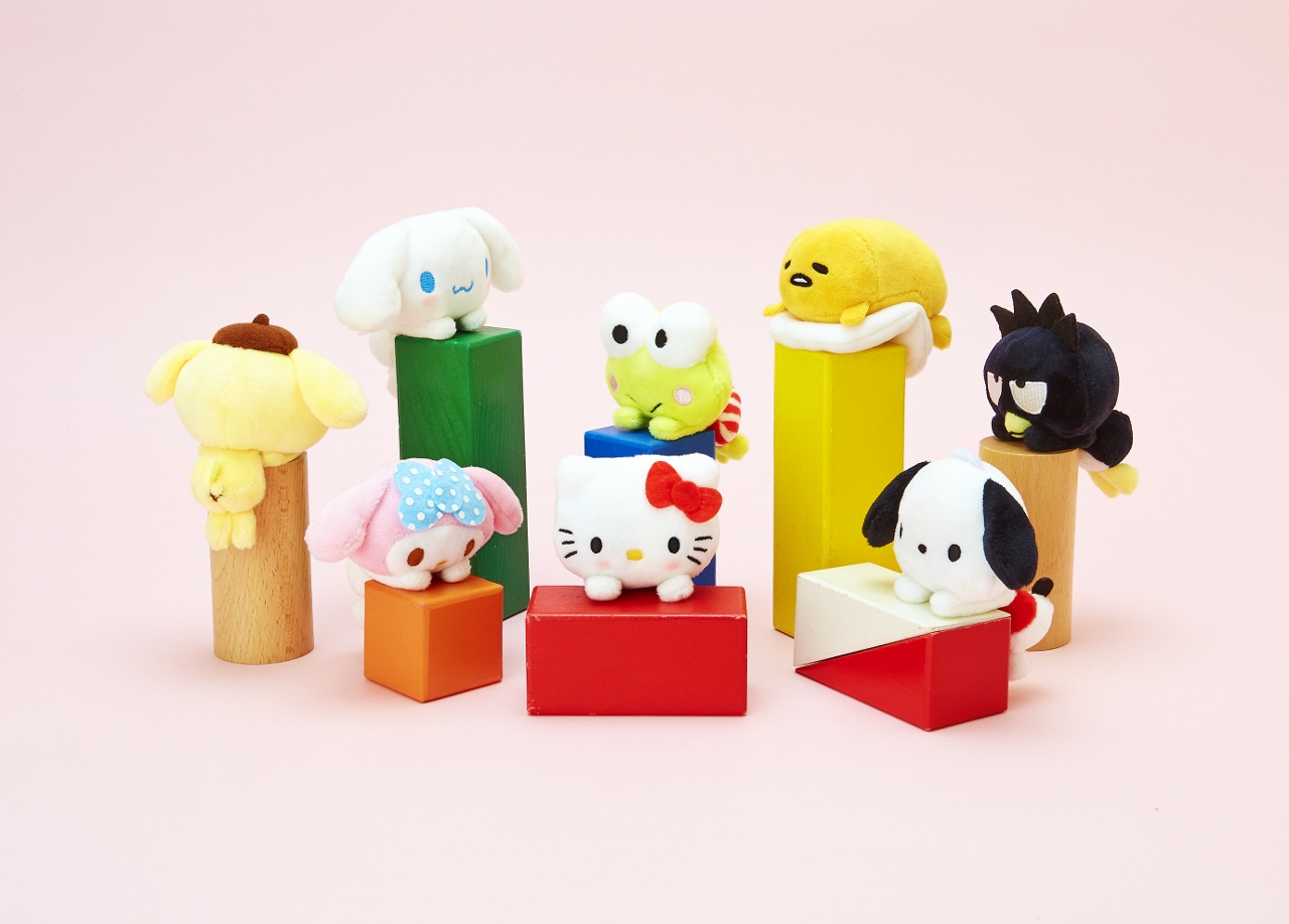 ↑発売中 前列左から:マイメロディ、ハローキティ、ポチャッコ、バッド ばつ丸、ぐでたま、けろけろけろっぴ、シナモロール、ポムポムプリン