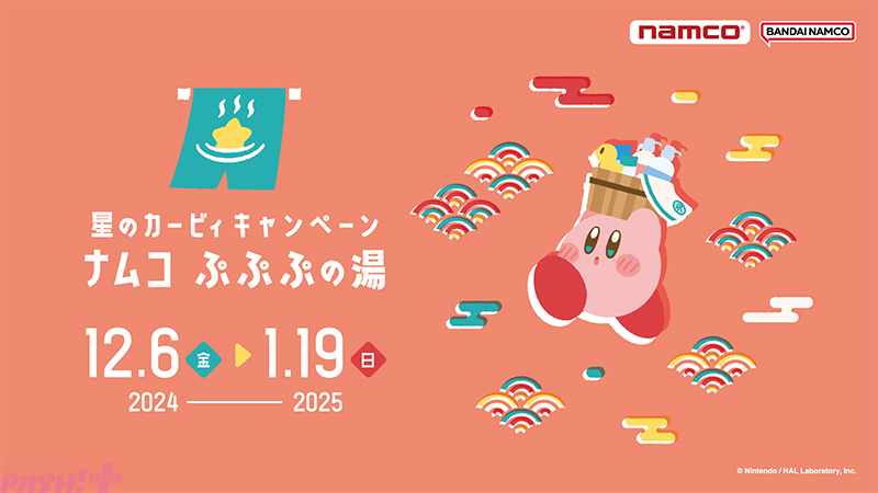 バンダイナムコアミューズメントは、『星のカービィキャンペーン ナムコ ぷぷぷの湯』を2024年12月6日(金)から2025年1月19日(日)まで、全国約200店舗のアミューズメント施設「ナムコ」および「ナムコオンラインクレーン」(ナムクレ)で開催します。