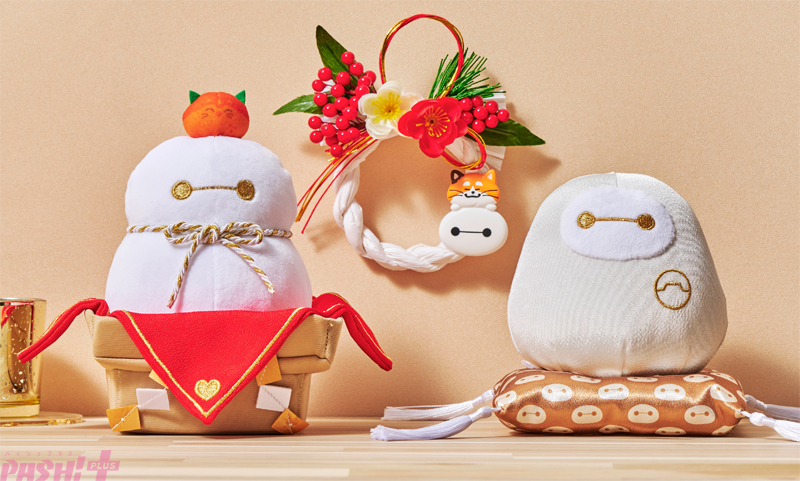 ベイマックスをモチーフにしたお正月アイテムが登場します。白をベースに金や赤の差し色がアクセントとなったシンプルで上品なデザインです。ラインナップには、しめ飾りや鏡餅などのお正月飾りをはじめ、ランチョンマットや豆皿といった新年の食卓を華やかに彩るテーブルウェアをご用意しました。そのほか、ぬいぐるみやマスコット、シークレット巾着などバラエティ豊かなアイテムも取り揃えます。