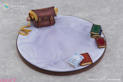 髪の隙間からチラリと覗く首すじ、はだけたシャツからあらわになる肩と肩ヒモ。スピリテイルが誇る「すべ肌加工」技術は滑らかな素肌と指先をより綺麗に見せることを可能にしました。TVアニメ作品の中で重要な意味を持つニケの冒険譚、イレイナのキャラクターを表すのに必要なアイテム群(イレイナの日記、外したリボン、カバンや魔法の杖)が台座を彩り物語を想起させます。