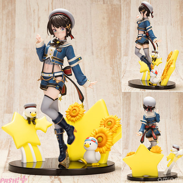 ホロライブプロダクション所属、ホロライブ2期生のVTuber『大空スバル』がサスペンダー衣装で立体化! ライブステージをイメージした台座には星やヒマワリと一緒にスバルドダックも登場しています。