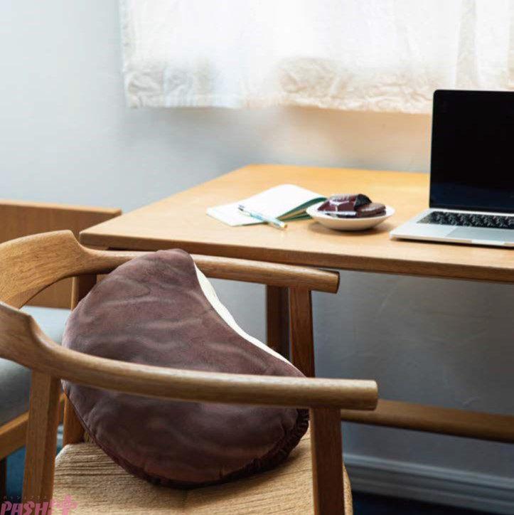 本誌特別アイテムは、昨年40周年を迎えた人気お菓子「ロッテのチョコパイ」そっくりのふわふわクッション。ひと口かじったようなデザインで、見ているうちに甘い香りがしてきそうなアイテムです。