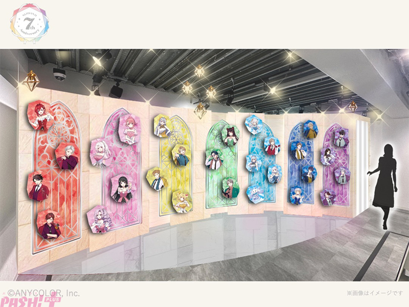 「にじさんじ 7th Anniversary」グッズの他さまざまなグッズ販売や、撮り下ろしビジュアルを使用したステンドグラス風パネルなどの展示を用意しています。