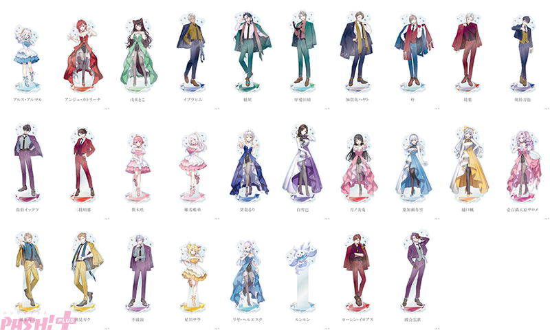 ・種類:全22種(アルス・アルマル、アンジュ・カトリーナ、戌亥とこ、魁星、甲斐田晴、加賀美ハヤト、叶、葛葉、剣持刀也、佐伯イッテツ、三枝明那、笹木咲、椎名唯華、栞葉るり、白雪巴、葉加瀬冬雪、樋口楓、風楽奏斗、不破湊、星川サラ、リゼ・ヘルエスタ、ルンルン)