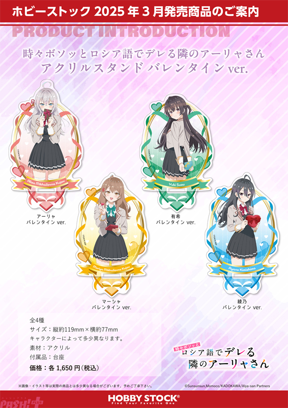 ホビーストックは、TVアニメ『時々ボソッとロシア語でデレる隣のアーリャさん』より、企画商品の予約受付を開始しました。