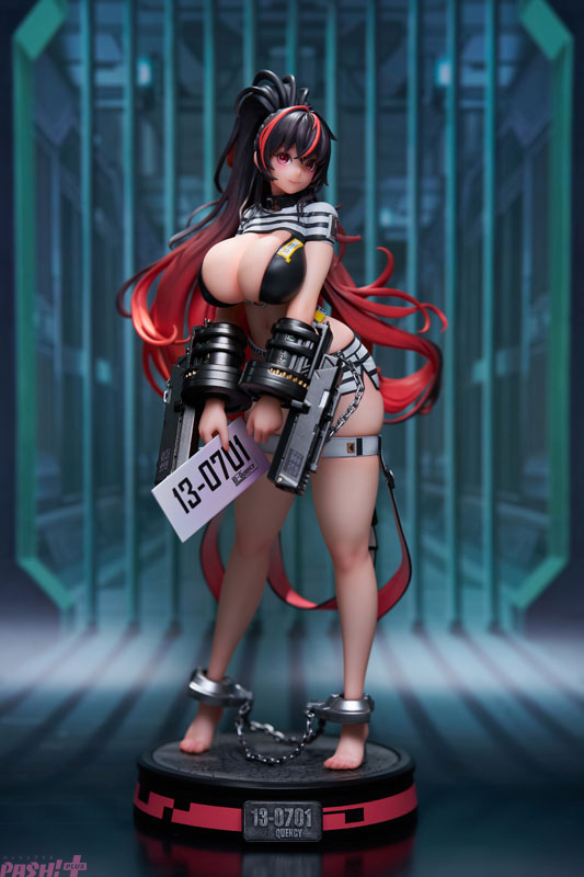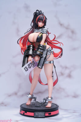『勝利の女神:NIKKE』より、偵察や哨戒行動を目的に開発されたニケ「クエンシー」のフィギュアが登場。豊かなバストを強調するような囚人服や武器をしても使われる大型の手錠を丁寧に造形。ピンクのメッシュが入ったロングヘアーも再現されています。