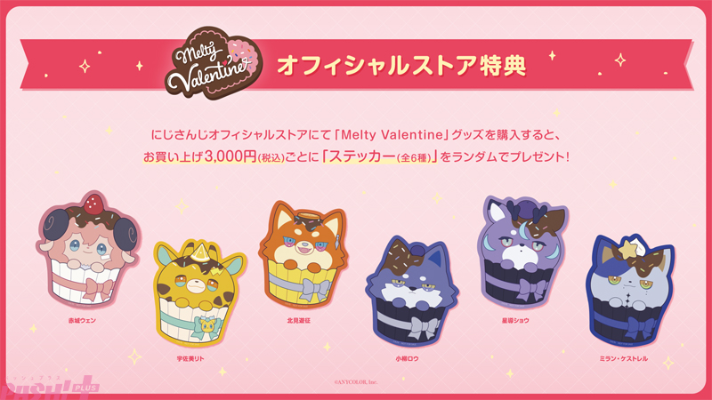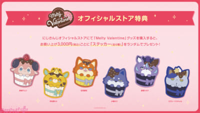 にじさんじオフィシャルストアにて「Melty Valentine」のタグがついている商品を税込3,000円お買い上げ毎に1点、「ステッカー(全6種ランダム)」をプレゼント。