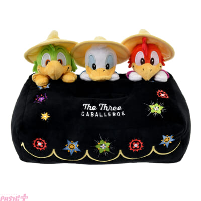 「うるぽちゃちゃん」からドナルド、ホセ・キャリオカ、パンチートのぬいぐるみが登場します。ソンブレロやカラフルなコスチュームなど、『三人の騎士』をモチーフにそれぞれのキャラクターの細かな特徴を表現したふわふわな手触りの愛らしいぬいぐるみです。
