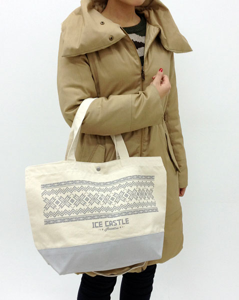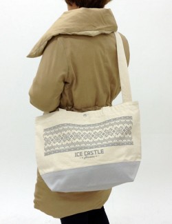 「アイスキャッスルはせつ斜め掛けトート」は2WAYで使える大きめサイズ。厚手のキャンバス生地を使用し、内側にはスマホや小物を収納できるポケットがついているのがポイントで、荷物が増えてしまいそうな外出時にも使いやすいトートバッグに仕上がっている。