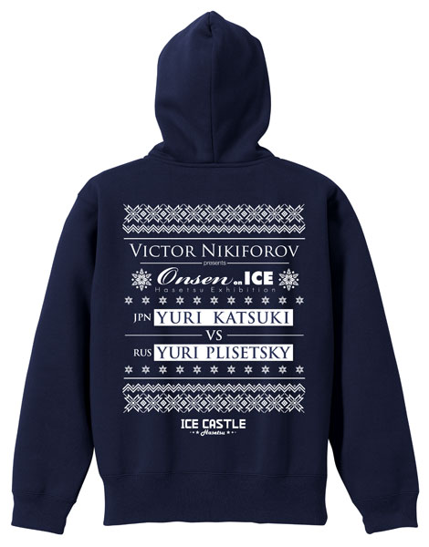 まずは第3話での名勝負「温泉 on ICE」をモチーフにしたパーカーとTシャツが登場。バックには勇利たちの名前や、「Onsen on ICE」の文字がプリントされている。「ヴィクトル・ニキフォロフTシャツ」は、氷上でのヴィクトルのシルエットがプリントされたデザインだ。
