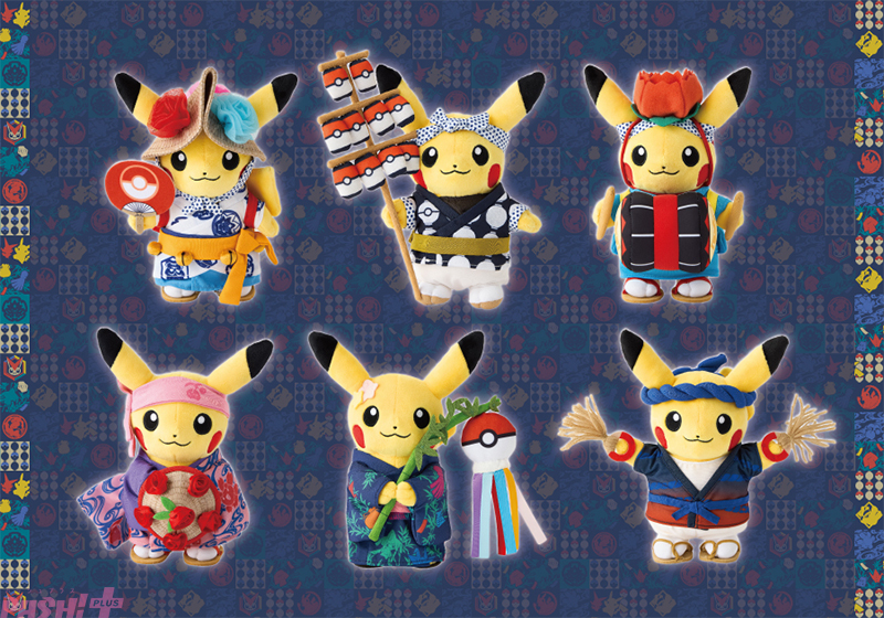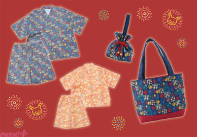東北地方のお祭りをイメージした衣装を着せてもらった、ピカチュウのぬいぐるみも登場。東北を代表する6まつり、「青森ねぶた祭」・「秋田竿燈まつり」・「盛岡さんさ踊り」・「山形花笠まつり」・「仙台七夕まつり」・「福島わらじまつり」をモチーフにしています。さらに、ポケモンたちといっしょにお祭りを楽しめるように、甚平も登場します。同時に販売予定の巾着バッグやトートバッグを持って、お祭りに出かけてみてはいかがでしょうか。