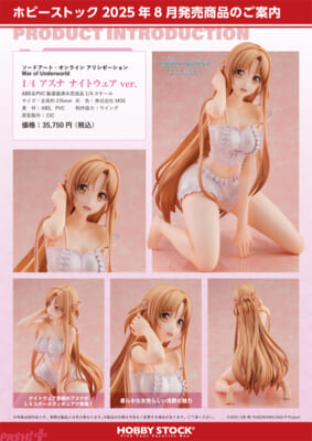 ホビーストックは、企画商品『ソードアート・オンライン アリシゼーション War of Underworld 1/4 アスナ ナイトウェア ver.』の予約受付を開始しました。
