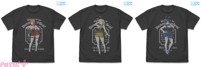 二次元コスパは、アドベンチャーゲーム『バニーガーデン』より、バニーガーデンユニフォーム姿の花奈、凜、美羽香3人の「両面アクリルスタンド(大)」をはじめ、「アクリルつままれ」「Tシャツ」などの新グッズを発売します。