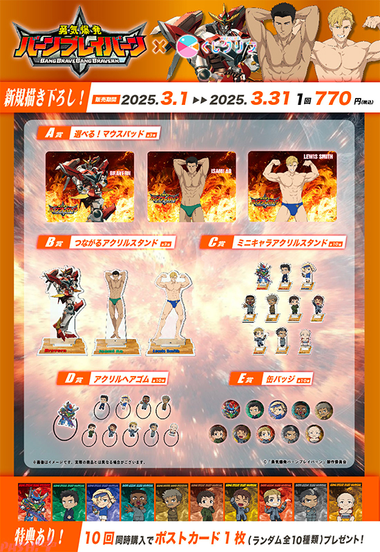 アニメ『勇気爆発バーンブレイバーン』イサミやスミスのボディビルダーをイメージした新規描きおろしイラストが登場! オンラインくじが発売決定
