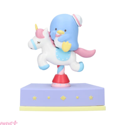 前回と同じくメリーゴーランドの木馬に乗ってブルブルとゆれる姿がかわいく、複数集めて並べると、遊園地のメリーゴーランドのように円形に飾ることができます。キャラクターは木馬から取り外せるので、別のデザインの木馬と組み合わせたり、第1弾の「-PINK-」と組みあわせて並べたりすることも可能です。