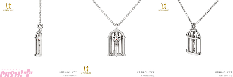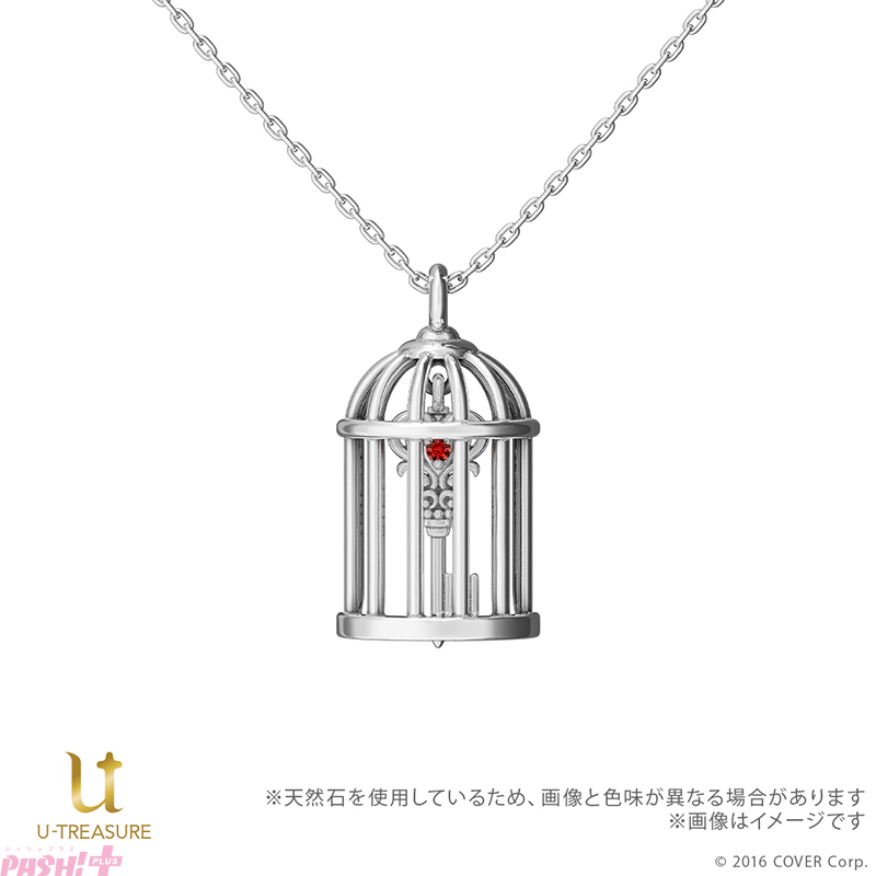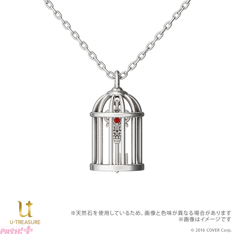 「I’m Your Treasure Box *あなたは マリンせんちょうを たからばこからみつけた。」のMVに登場する、鳥かごと鍵をモチーフにしたネックレス。閉じ込められた秘宝の鍵も細部まで表現。鍵の中央には深い赤色が魅力的なガーネットを留めました。