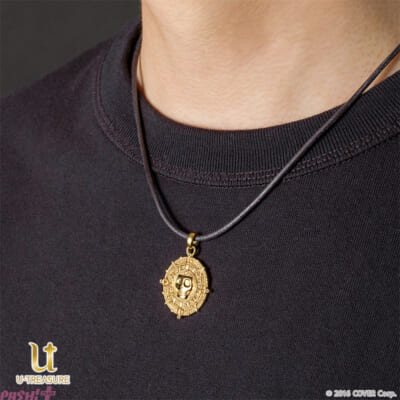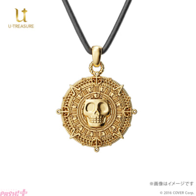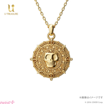 両面に刻印や装飾を施したコインネックレス。表面にはドクロくんや錨をモチーフに取り入れ、マリン船長らしさを表現しました。本企画のために描き起こされたマリン船長を裏面に刻印。
