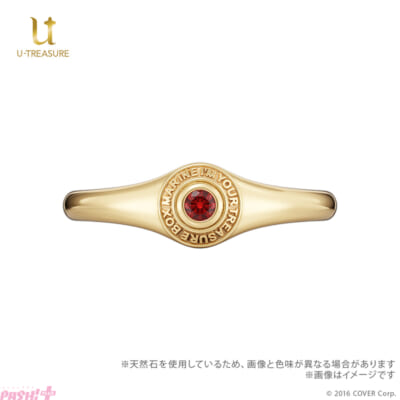 中央に留めた深い赤色が魅力的なガーネットが、「マリ箱」らしさを演出してくれるリング。ガーネットを囲むように「I’M YOUR TREASURE BOX」の文字を刻印しました。