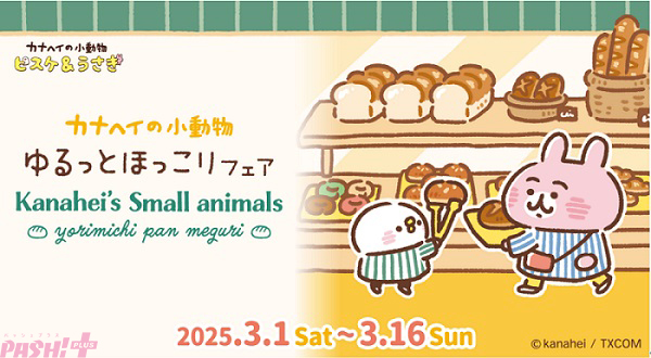 テレビ東京コミュニケーションズは、3月1日(土)~3月16日(日)までキデイランド、FEWMANY、ゆるっと書店、ヤマシロヤ、ヴィレッジヴァンガード、カナヘイの小動物公式ECサイト「ゆるっとストア」で、「ゆるっとほっこりフェア~よりみちパン巡り~」を開催します。