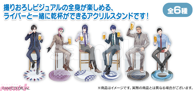 本くじでは、DMMスクラッチ限定の多彩なラインナップと共に、ライバーのサイン入り色紙が抽せんで当たるWチャンス賞を計24日間開催します。「仕事帰りに一杯」をテーマに、スーツ姿の新規撮りおろしビジュアルを使用した限定グッズが登場!