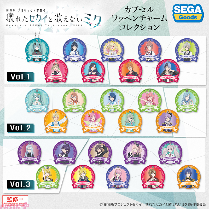 「劇場版プロジェクトセカイ 壊れたセカイと歌えないミク」カプセルワッペンチャームコレクション Vol.1