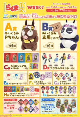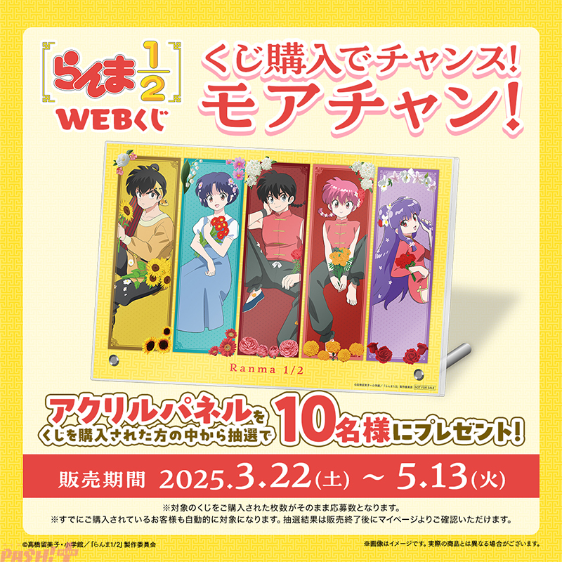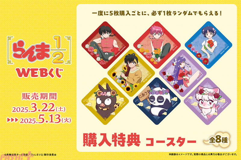 2024年秋に待望の完全新作的アニメ化として蘇り、幅広い世代に大好評&第2期の期待も高まるTVアニメ『らんま1/2』より、描き下ろしイラストを使用したグッズが「WEBくじ出張所」として全国の販売店舗と、オンラインくじサイト「WEBくじ」にて販売されます。