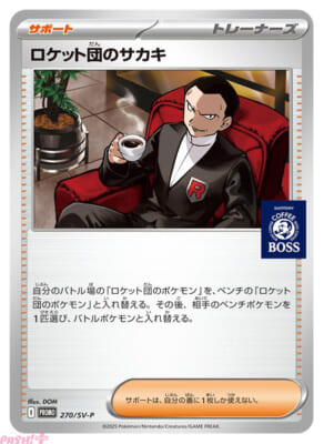 ※『ポケモンカードゲーム スカーレット&バイオレット』シリーズの拡張パック「ロケット団の栄光」(4月18日(金)発売)に収録される「ロケット団のサカキ」と同じ効果を持つカードです。