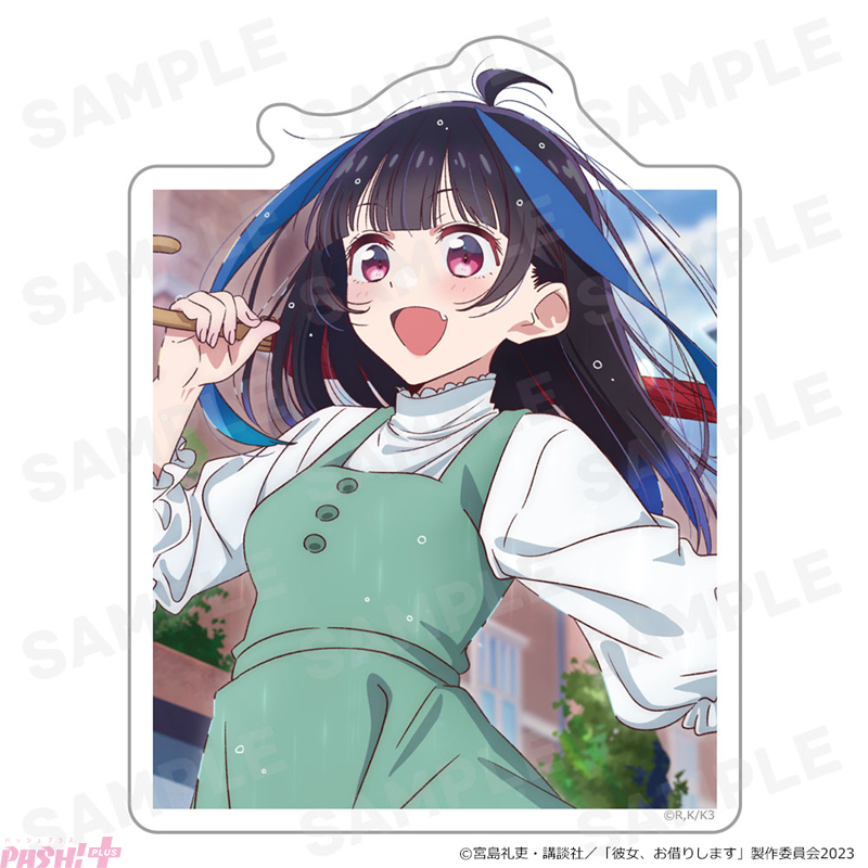 アニメ『彼女、お借りします』より、アクリルキャラスタンド、ダイカットステッカー、B2タペストリーなどのグッズが登場します。