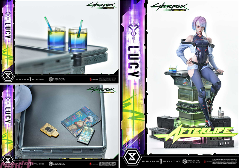 ルーシーらデイビッドのクルーを、原作ゲーム『サイバーパンク 2077』のCGテイストで表現したら–。この発想を高精細な1/4スケールで具現化したスタチューです。しなやかな身体をバーカウンターに預けるポーズに、ゲームのリアルなデザインを調和させました。