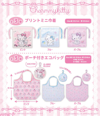 【サンリオ】ガーリーなデザインがかわいい! チャーミーキティのプリントミニ巾着やポーチ付きエコバッグが登場