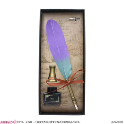『モンスターハンターワイルズ』に登場するキャラクター、「セクレト」の羽根をモチーフとした羽根ペンが登場! 一緒にお使いいただけるインク、ペンスタンドも付属しています。鮮やかな色の羽根ペンは、インテリアとしてお部屋に飾っても楽しめます。