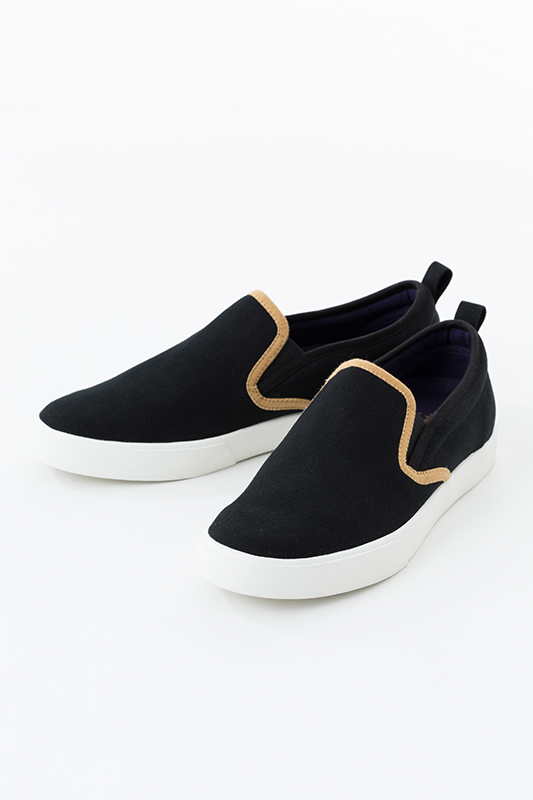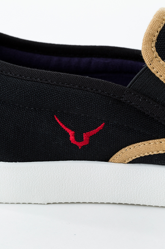 黒がベースのシンプルなデザインとなっているので、どんなコーデにも合わせられるところがGOOD! 長時間履いても疲れにくく、さらにインソールは取り外して洗うこともできる。左足の内側にだけ、ギアスマークの刺繍があるところは、ファンにだけわかるポイントだ。