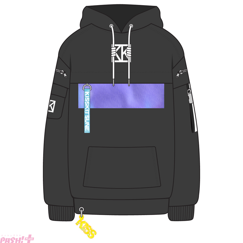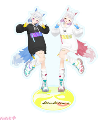 『キスキツネ』のオリジナルグッズとして、MV衣装を再現した「フーディー」と、メインビジュアルを使用した「アクリルスタンド」の2種類をご用意しました。「フーディー」は、HIME white ver./HINA black ver.の2パターン展開で、いずれも袖の取り外しが可能なデザインです。