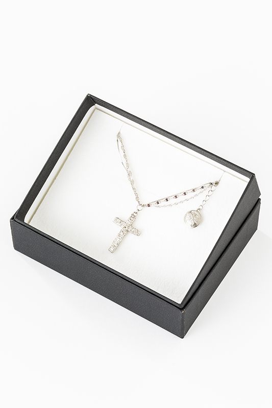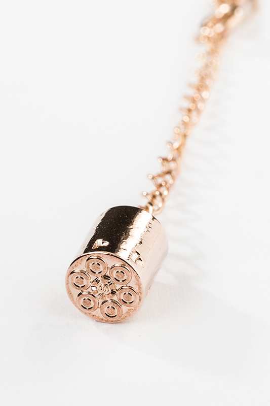 同モデルのネックレスは、トップパーツはパニッシャーの梱包状態、エンドパーツはパニッシャーの本体のトリガーをモチーフにしている。