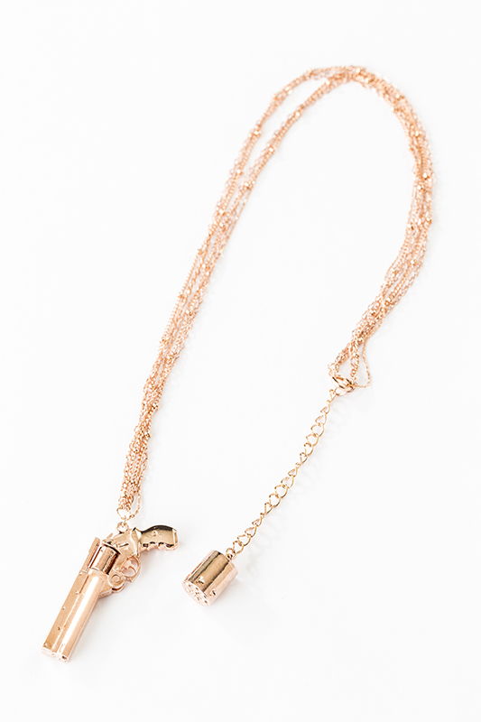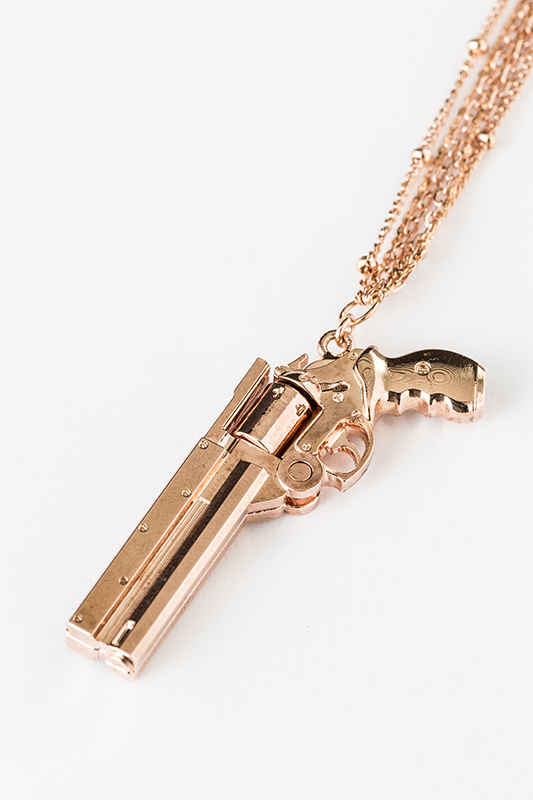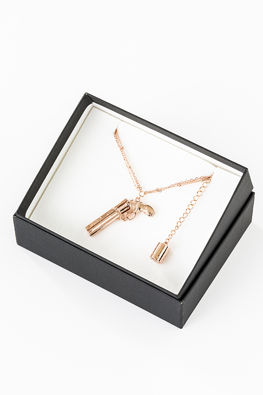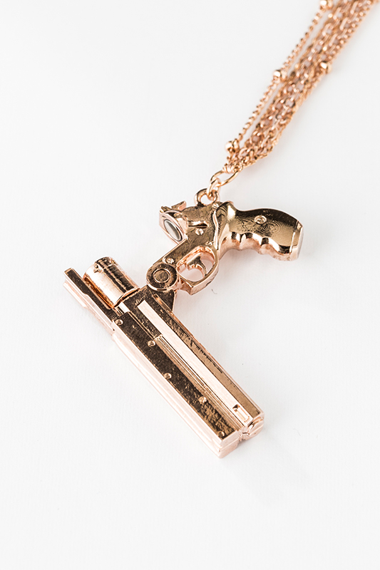 同モデルのネックレスはトップパーツがヴァッシュの銃、エンドパーツが銃のシリンダーとなっている。また、銃はシリンダーが回転する仕組みとなっている。