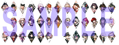 種類:全37種(苗木 誠/霧切響子/十神白夜(DR)/舞園さやか/腐川冬子/ジェノサイダー翔/セレスティア・ルーデンベルク/山田一二三/朝日奈葵/桑田怜恩/不二咲千尋/石丸清多夏/大和田紋土/江ノ島盾子/戦刃むくろ/葉隠康比呂/大神さくら/石丸清多夏(白)/色葉田田田/モノクマ/モノミ/日向 創/狛枝凪斗/七海千秋/澪田唯吹/罪木蜜柑/田中眼蛇夢/ソニア・ネヴァーマインド/左右田和一/九頭龍冬彦/辺古山ペコ/西園寺日寄子/小泉真昼/花村輝々/弐大猫丸/終里赤音/十神白夜(SDR2))
