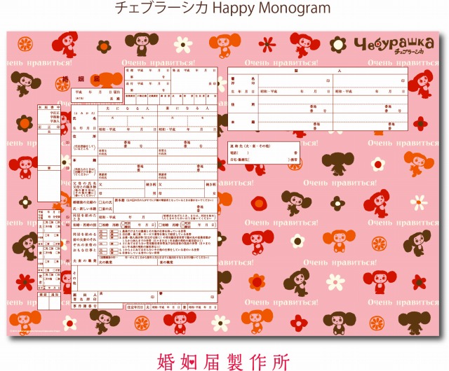 e’motionが運営する「婚姻届製作所」よりチェブラーシカデザインの実際に役所へ提出できる婚姻届の販売が開始された。
