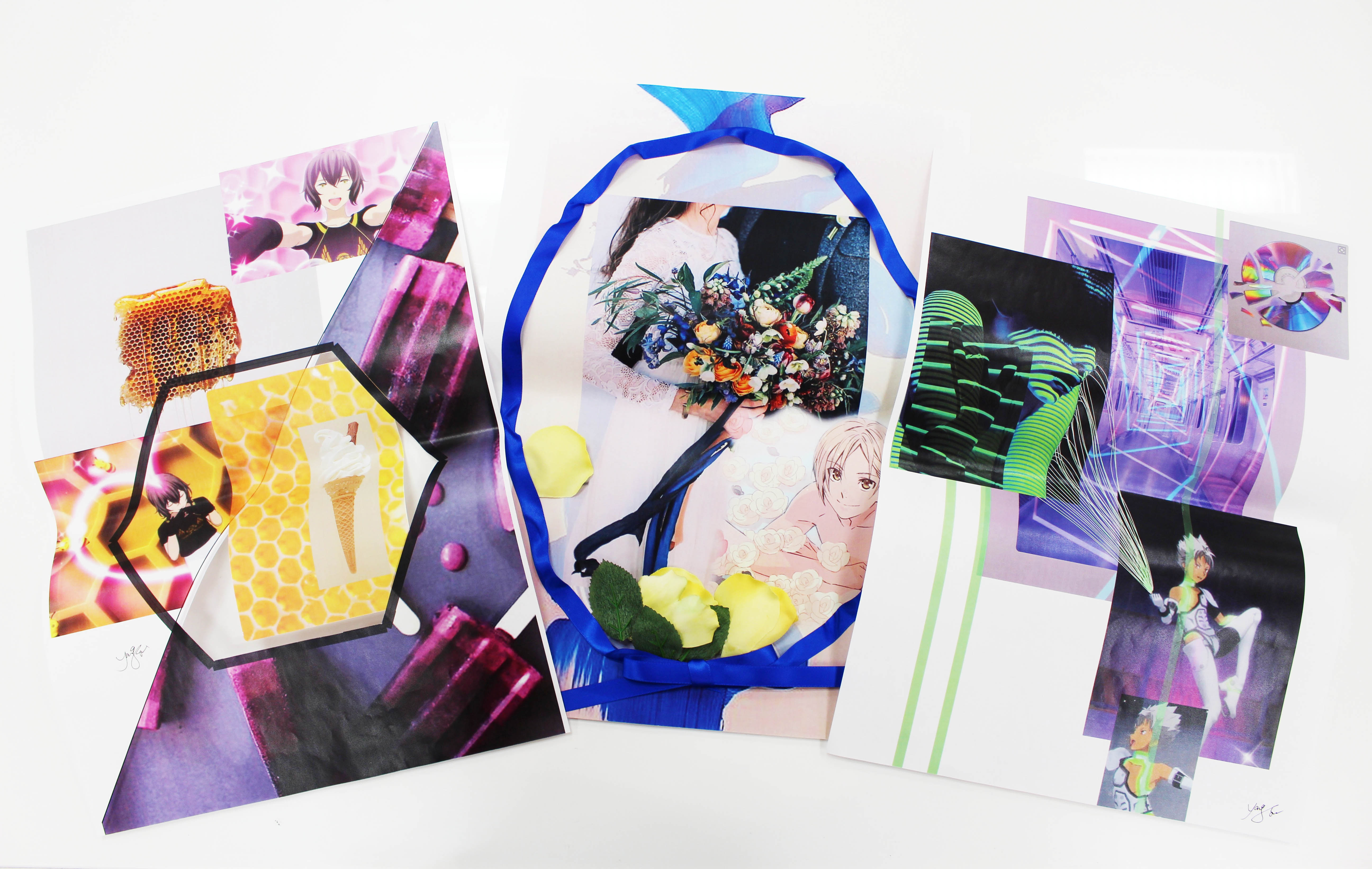 まずアイディアをイメージにまとめます。どのシーンをもとにするか、どんなタイプのアイテムなのか——たとえばエレガントかカジュアルかなど。そして、キャラのイメージカラーなども考慮して、私の場合はまずはコラージュを作って大まかなデザインのイメージを決めていきます。
